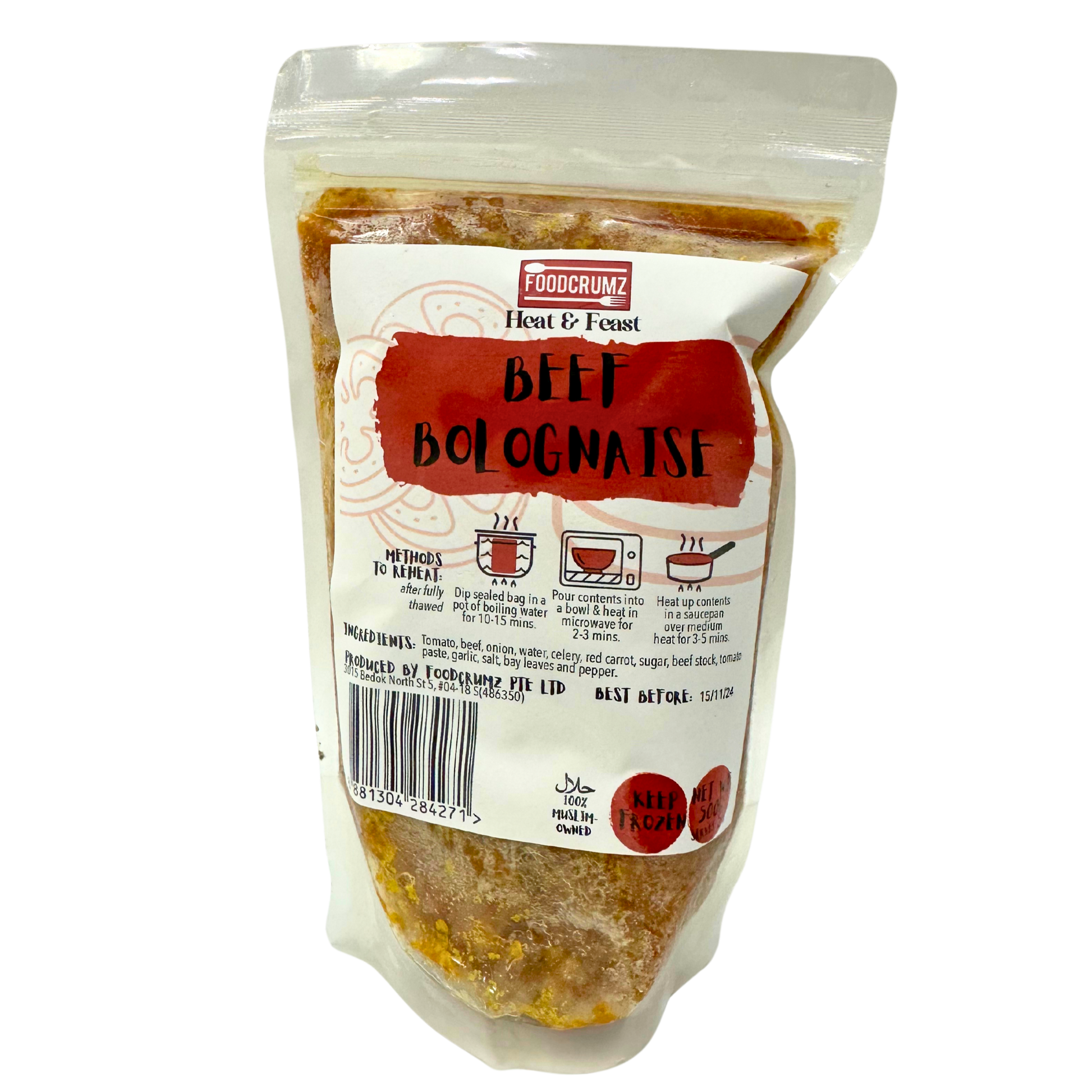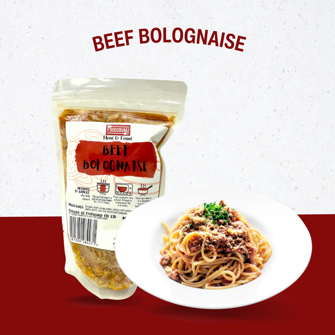 Thick and rich tomato-based beef bolognaise sauce that strikes a balance of tangy-sweet flavours and generous amounts of minced beef. Enjoy this with your favourite pasta/meat-based pizza sauce/lasagne filling/hotdog topping and more. Hearty and fulfilling!