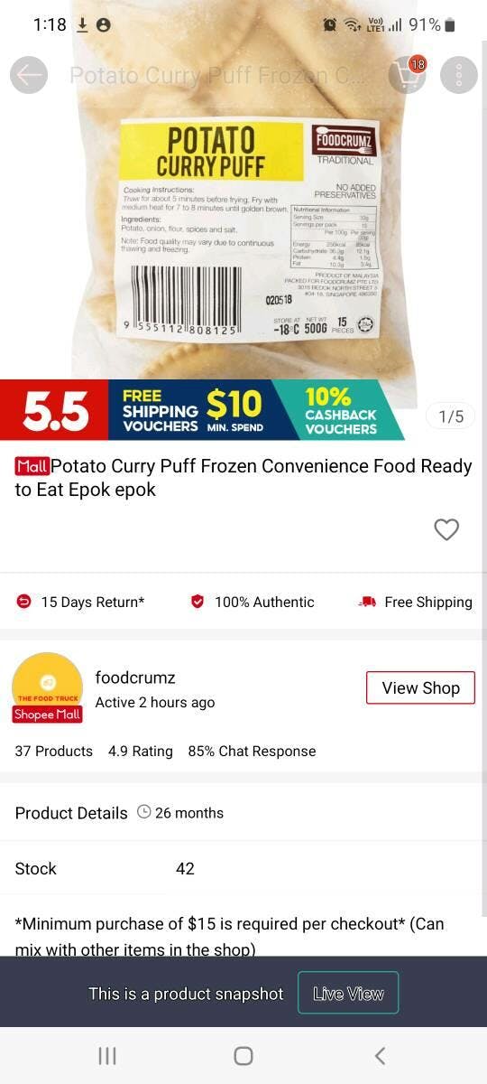 *Do not fully thaw the curry puff as the skin will turn soft and stick to other curry puffs.